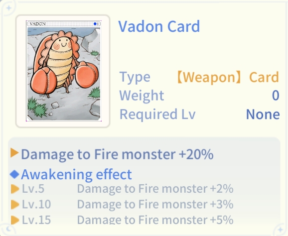 On the other hand, you can use cards like Vadon. This card does not change your weapon attribute but increases the damage you dealt against a certain element. Please note: Some skills are Forced-Neutral like the Asura Strike.
