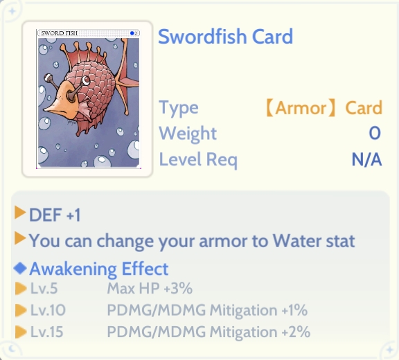 While using cards like the Swordfish Card changes your defense element.