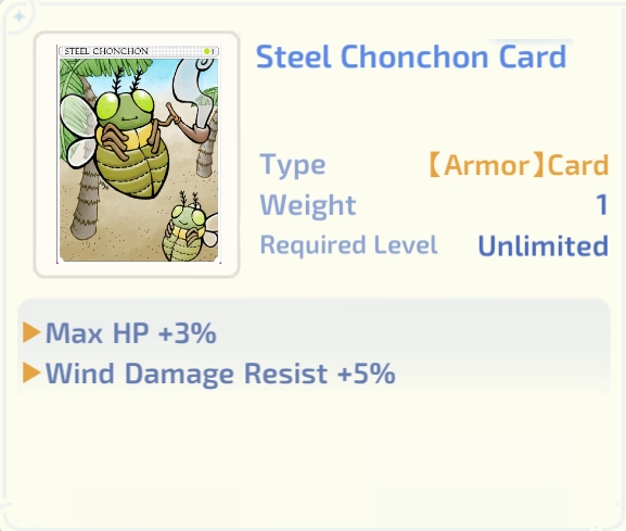 Steel Chonchon Card reduces your Wind damage taken by 5%