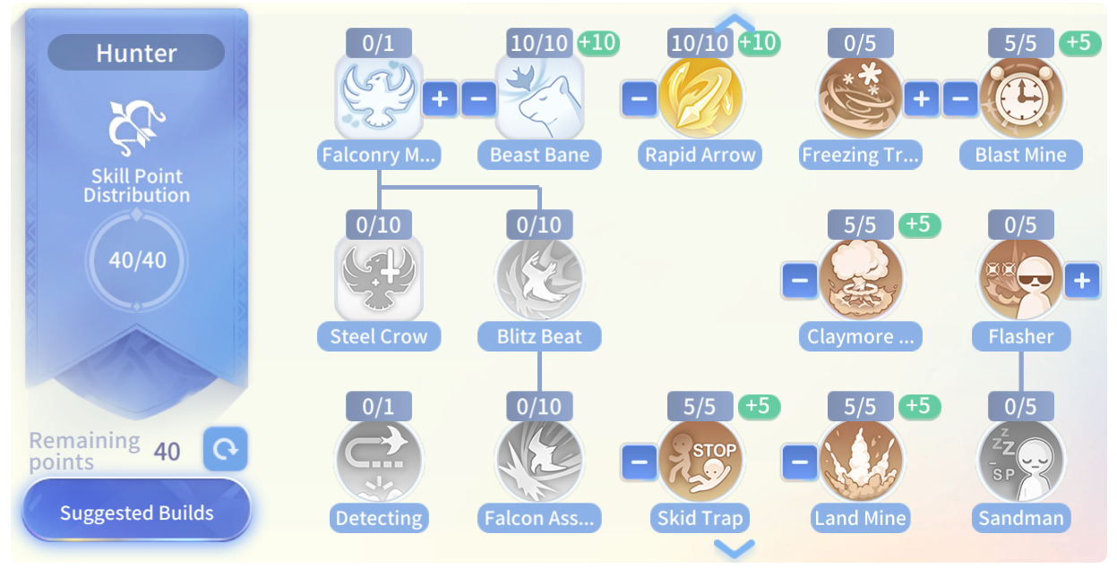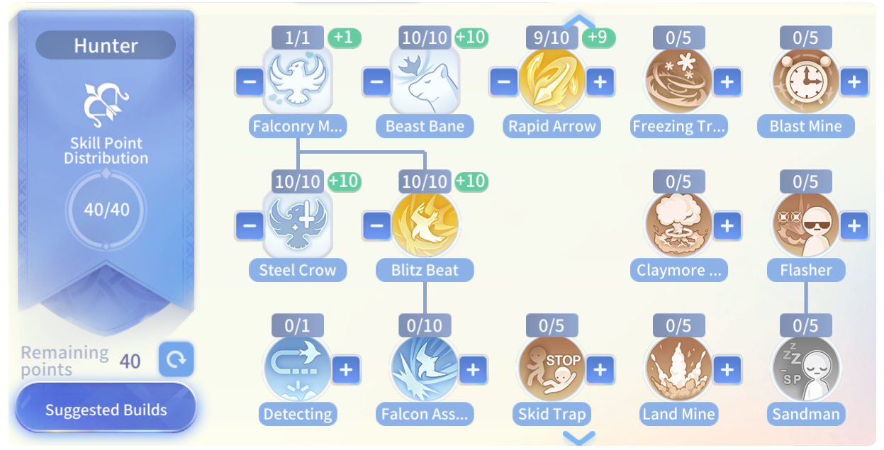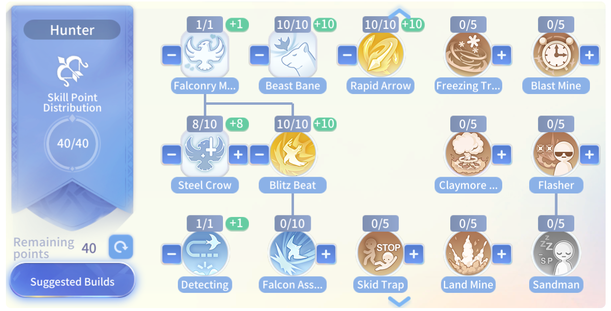 After this, upgrading skills will depend on your own preference. It is recommended to consider falcon-related ones: