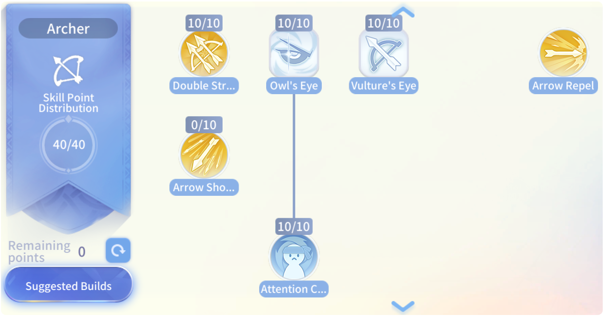 * **Vulture’s Eye Lv.10** **-** Increases bow range by 10.