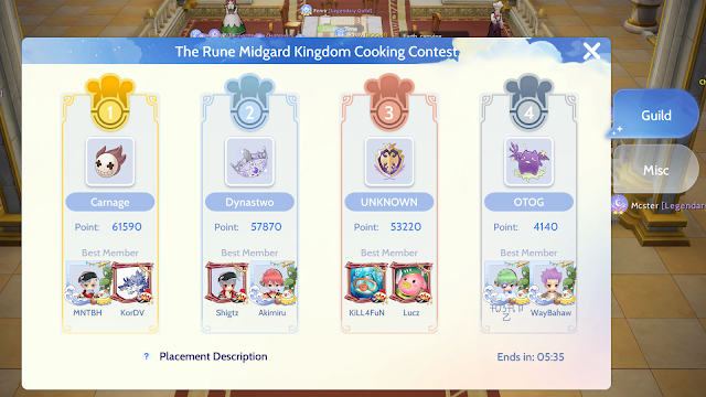 Guild members are encouraged to participate in cooking contests for better rewards. A member's performance in the cooking contest also affects the overall guild performance in the cooking contest, as well as the bubble reward bonus.