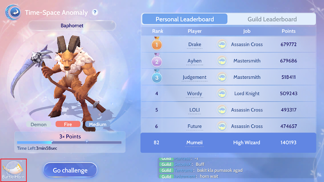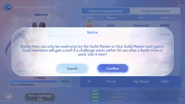The guild leader and vice leaders can blow the horn to increase all the guild members' damage dealt to the monster.