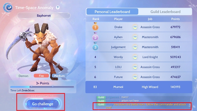 The guild leader and vice leaders can blow the horn to increase all the guild members' damage dealt to the monster.