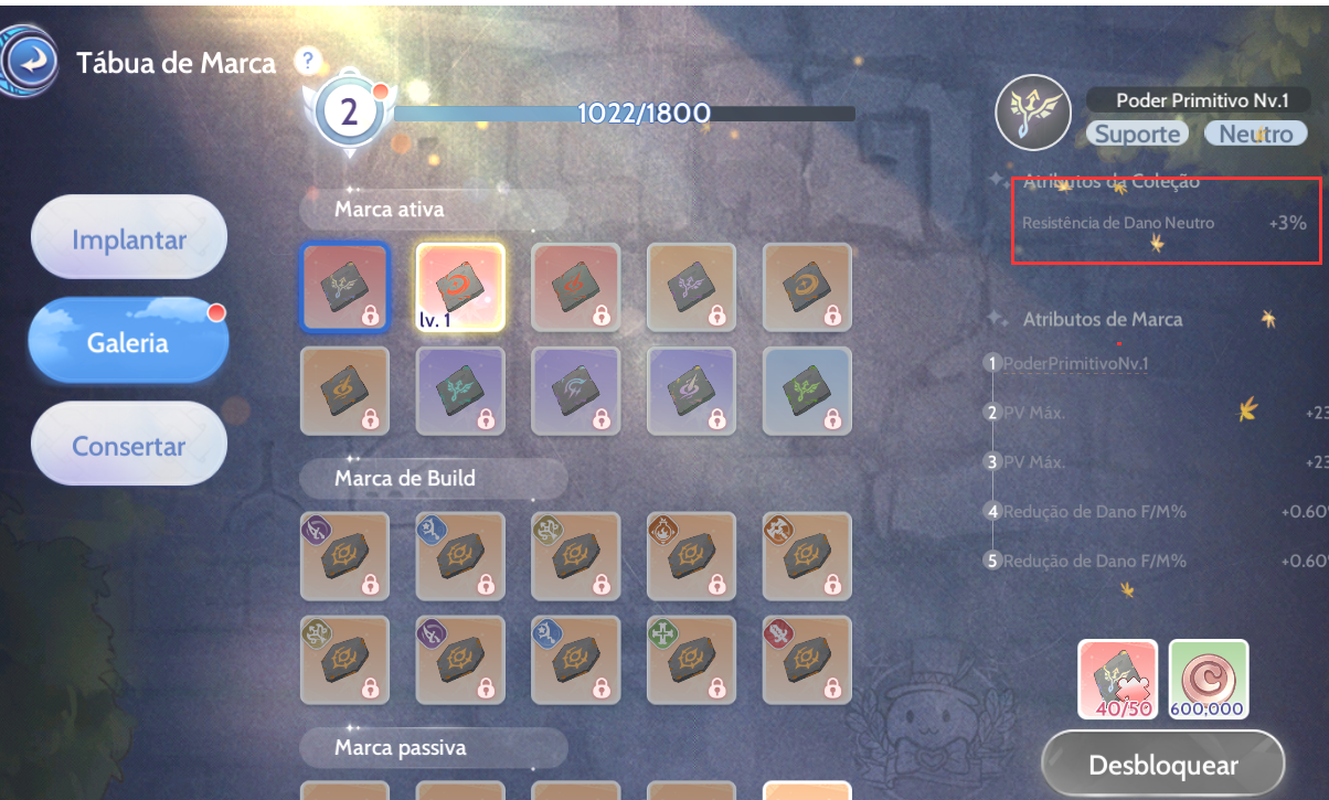 Quando cada Selo é desbloqueado pela primeira vez, ele ativará atributos de coleção correspondentes que terão efeito permanente.