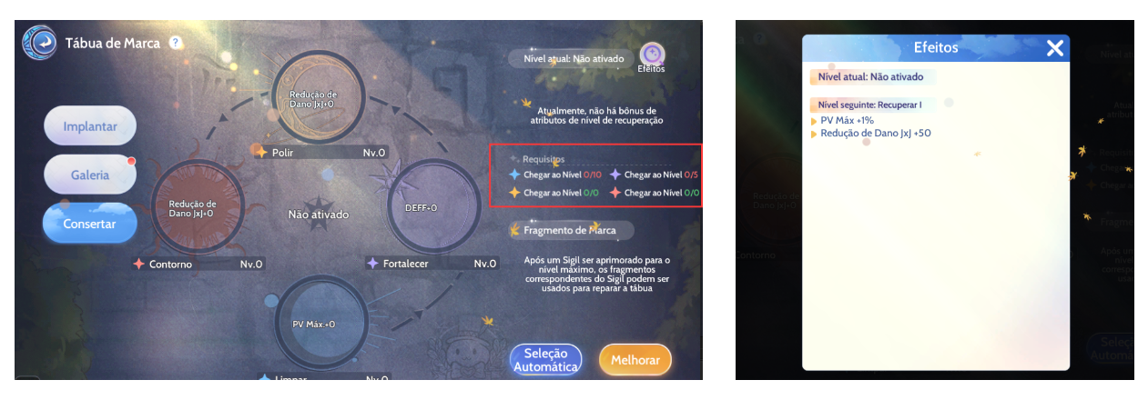 Após atingir o nível máximo, os fragmentos de selo podem ser usados para reparar a Tábua de Pedra do selo. Aumentar o nível de reparação vai oferecer bônus do atributo.
